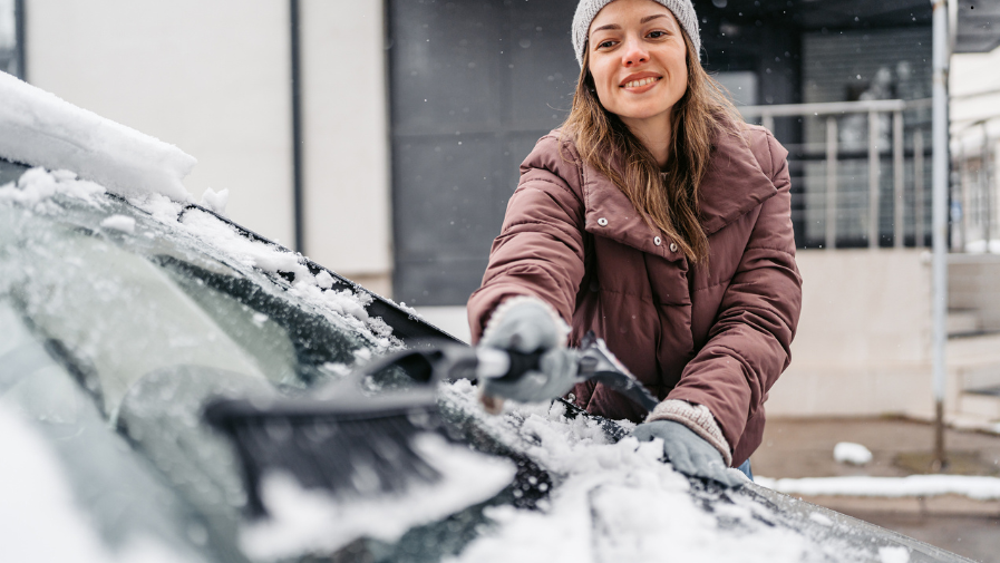 Utilisez un grattoir, un balai à neige et, si besoin, un dégivrant pour les serrures ou les vitres.